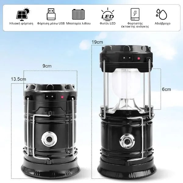 Ηλιακό Επαναφορτιζόμενο Φανάρι Κάμπινγκ + Φακός | CAMPGLO