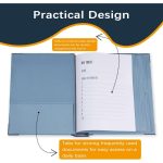 Σχεδιασμένος στο χέρι πίνακας περιεχομένων και αυτοκόλλητες ετικέτες καθιστούν την παρακολούθηση των εγγράφων απλή και κομψή.