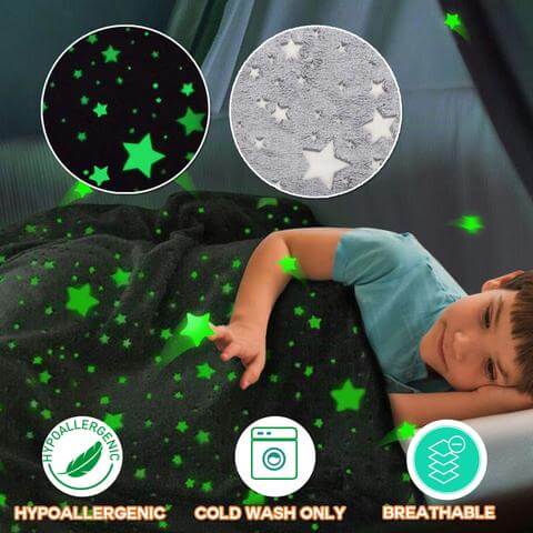 BLANKGLOW! Φτιαγμένη από υλικά που φωσφορίζουν, αυτή η μαγική κουβέρτα θα φέρει τον ύπνο σας σε γαλαξιακό επίπεδο! Τα φωτεινά υλικά θα έχουν μια χαλαρωτική λάμψη τη νύχτα!
