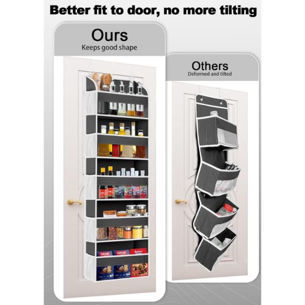 Εξοπλισμένος με 3 ρυθμιζόμενα μεταλλικά γάντζους, αυτός ο οργανωτής ταιριάζει εύκολα σε πόρτες μέχρι 4 εκατοστά πάχος.