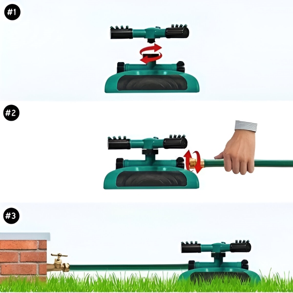 Με τα διπλά ακροφύσια του σωλήνα νερού του ROTOSPRITZ, μπορείτε να συνδέσετε αβίαστα πολλαπλούς ψεκαστήρες για να καλύψετε μεγαλύτερες περιοχές. Απλά συνδέστε δύο ή περισσότερες μονάδες ROTOSPRITZ μεταξύ τους για άρδευση διπλής όψης, εξασφαλίζοντας ότι ολόκληρος ο κήπος σας λαμβάνει την ιδανική ποσότητα νερού. Αυτή η απρόσκοπτη συνδεσιμότητα το καθιστά ιδανικό για εκτεταμένους χλοοτάπητες και μεγάλα παρτέρια κήπων.