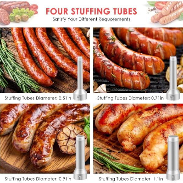 Εξοπλισμένο με 4 σωλήνες PP και 2 βουρτσάκια, αυτό το εργαλείο για το γέμισμα λουκάνικων με κρέας είναι ιδανικό για γιορτές και οικογενειακές συγκεντρώσεις.