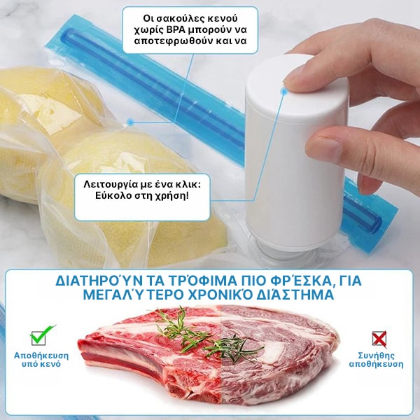 Συσκευή σφράγισης τροφίμων με κενό αέρος και αντλία αέρα | QUICKSEAL