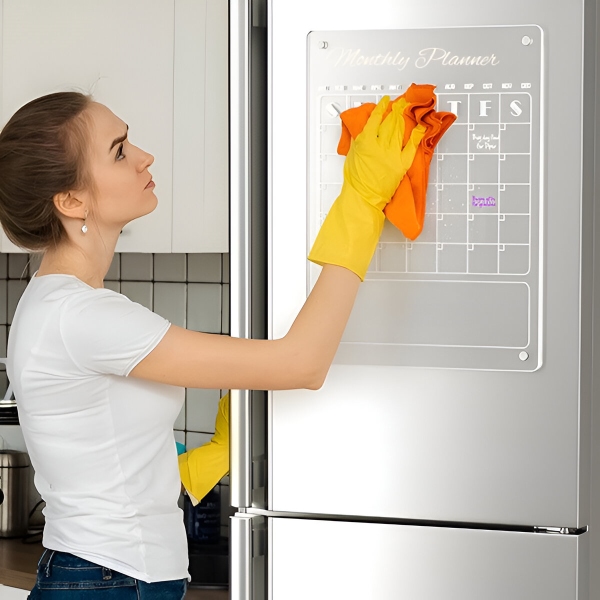 Το ακρυλικό μας ημερολόγιο έχει ισχυρή μαγνητική δύναμη. Εάν χρειαστεί να το επανατοποθετήσετε, βεβαιωθείτε ότι ακολουθείτε τη σωστή διαδικασία αφαίρεσης. Αποφύγετε να το τραβήξετε απευθείας προς τα κάτω, καθώς αυτό θα μπορούσε να γρατζουνίσει το ψυγείο. Να είστε προσεκτικοί και να χειρίζεστε το ημερολόγιο με προσοχή.