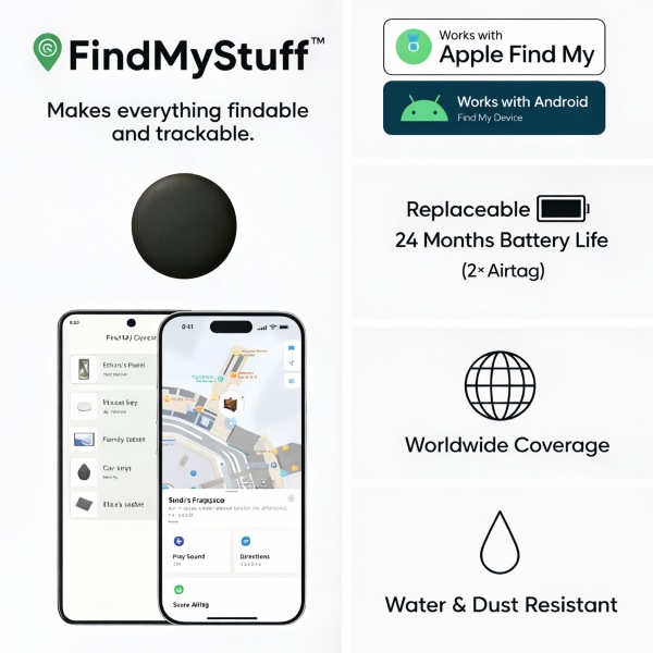 📱 Συμβατότητα με Apple & Android “Find My”