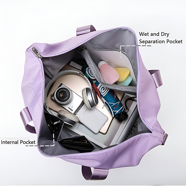 Αυτή η τσάντα διαθέτει ένα υγρό και στεγνό διαχωριστικό για άνετη αποθήκευση βρώμικων ή βρεγμένων ρούχων και πετσετών.